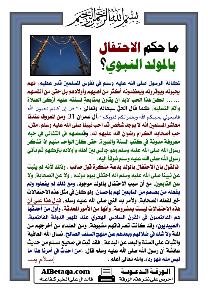 حكم الاحتفال بالمولد النبوي ابن باز ابن عثيمين الألباني بطاقات دعوية منتديات التصفية و التربية السلفية