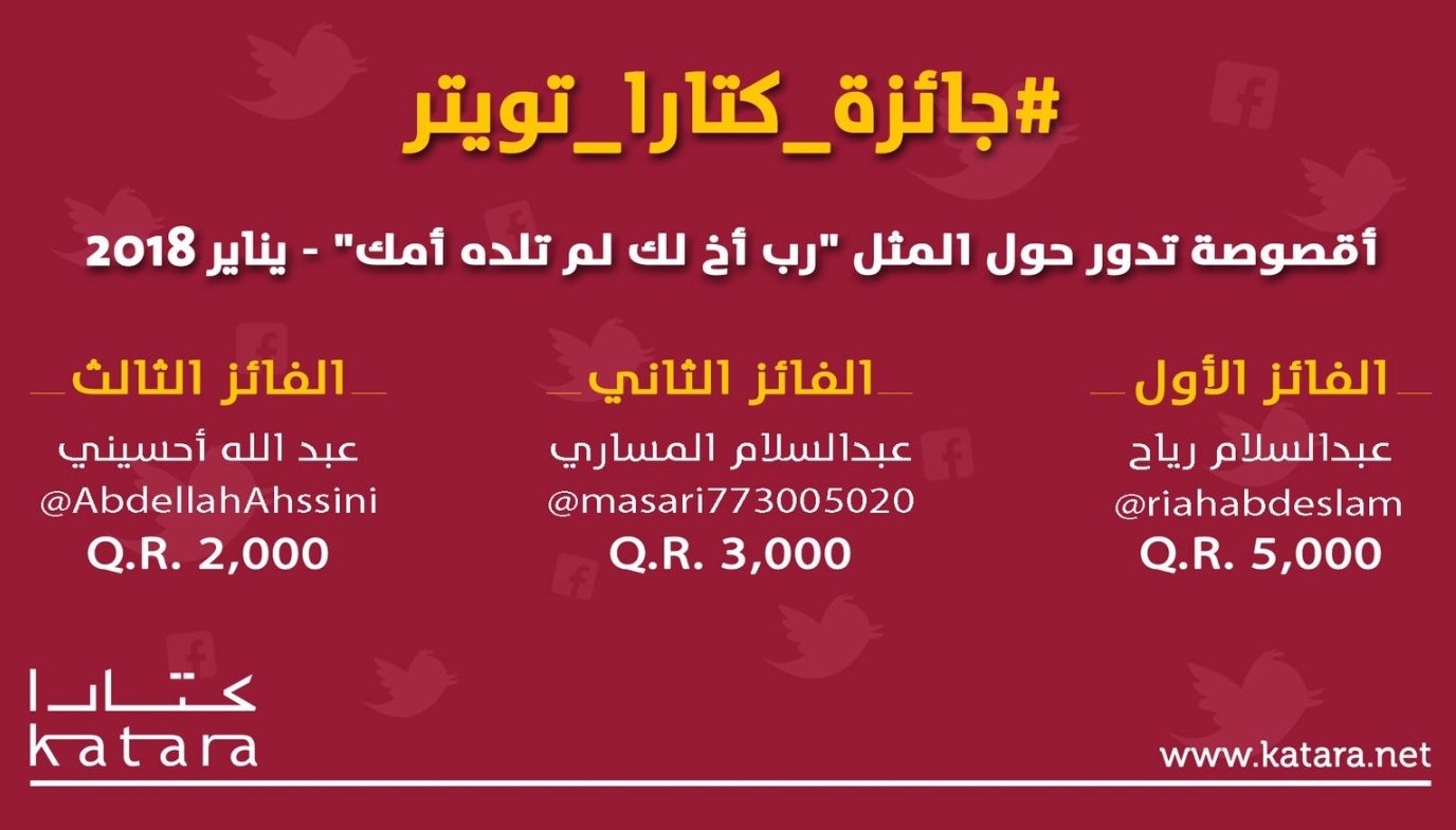 Katara Tweet Pa Twitter الفائزون بمسابقة شهر يناير 2018 أقصوصة تدور حول المثل رب أخ لك لم تلده أمك جائزة كتارا تويتر